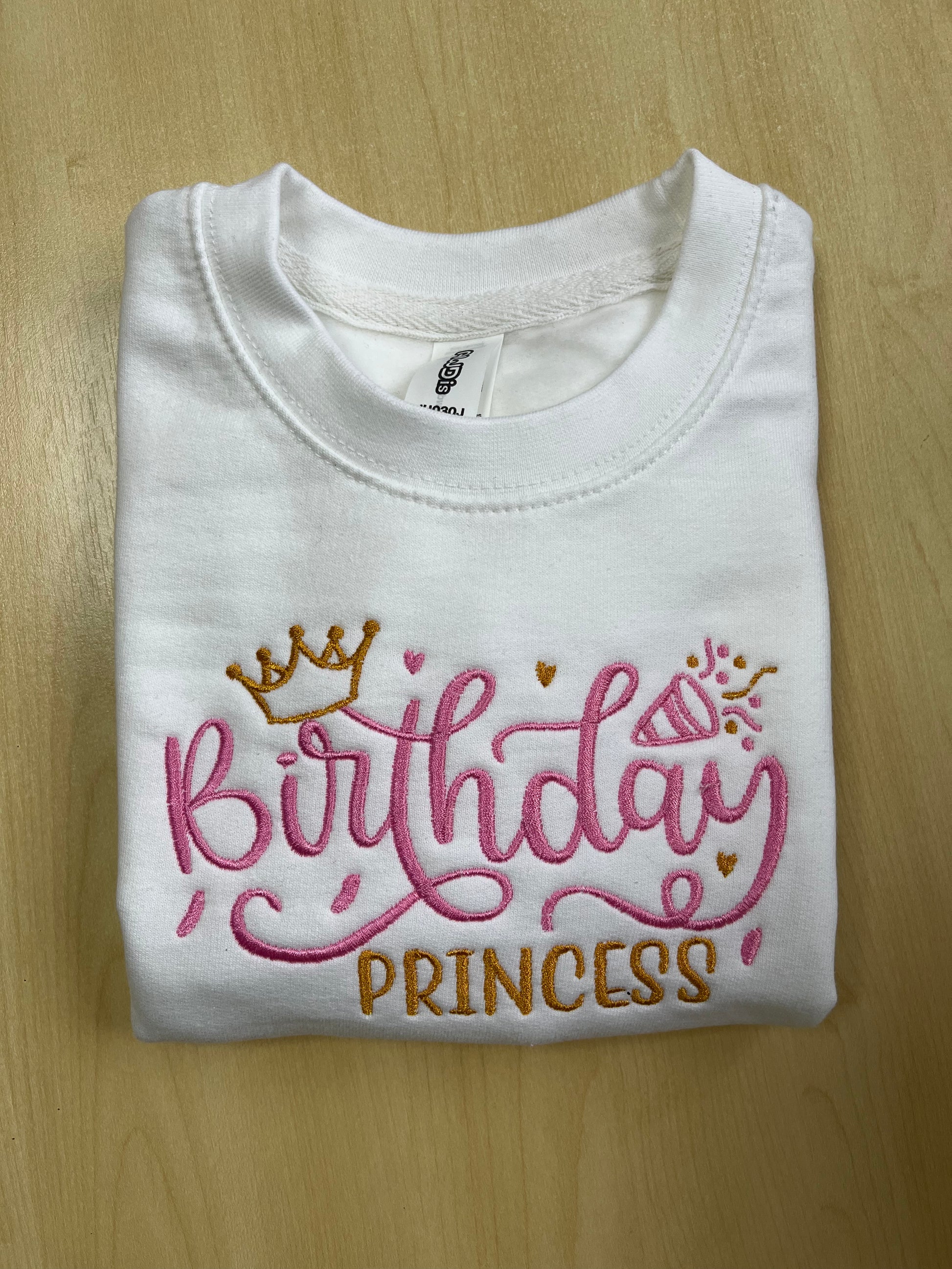 Child sweatshirt with birthday princess embroidery design. Perfect for those winter birthdays.